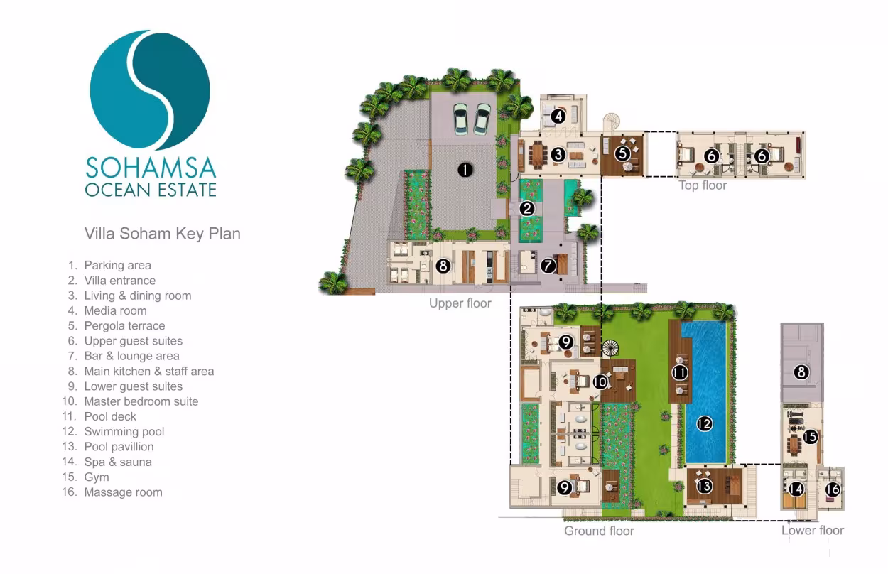 La Villa Soham, composée de cinq chambres, constitue l'une des deux somptueuses villas du Sohamsa Ocean Estate, perchées sur une falaise à la pointe sud de la magnifique péninsule de Bukit à Bali. Offrant des vues spectaculaires sur l’océan, un espace de vie somptueux, une grande piscine, une salle de sport et une salle de massage, cette villa est entièrement équipée d'un personnel dévoué, comprenant un chef talentueux et un chauffeur avec une voiture de sept places. La Villa Soham est idéale pour ceux qui recherchent un séjour luxueux hors des sentiers battus, tout en restant à proximité de l’aéroport, des célèbres spots de surf de Bali, de magnifiques criques de sable, du célèbre temple marin d’Uluwatu et d’excellents restaurants.